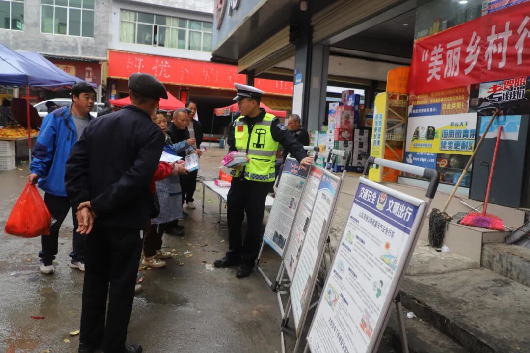 当天正值怒溪镇赶集日,人流密集,宣传民警抓住这一契机,在集市主要路口悬挂宣传横幅、摆放案例展板,向过往群众发放交通安全宣传资料和礼品,并结合农村地区常见的农用车违法载人、酒后驾驶、无证驾驶等隐患问题,民警以案释法,详细讲解违法行为的危害性,倡导大家自觉抵制交通陋习,做到文明出行。