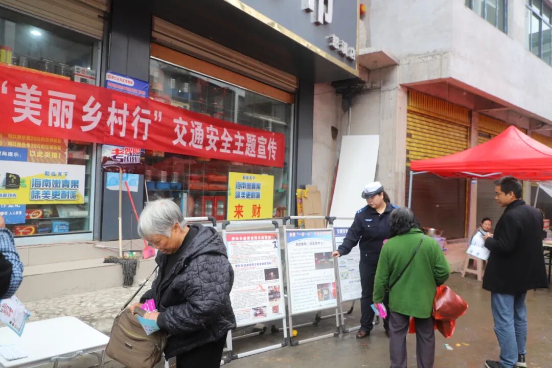 近日,江口县公安局交警大队联合高速交警江口大队深入江口县怒溪镇,通过“赶集宣传+校园宣讲”双线并行的方式,开展交通安全主题宣传活动,为即将到来的第十四个122“全国交通安全日”预热造势,进一步提升农村群众及在校学生的交通安全意识,筑牢道路交通安全防线。