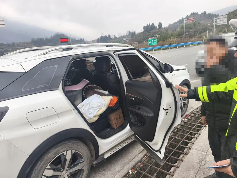 “师傅,您这后备箱里,怎么还‘藏’了一辆电动车啊?”2月26日,铜仁高速四大队在秀印高速印江东收费站开展违法整治行动时,拦下了一辆小型普通客车。打开后备箱的瞬间,在场的民辅警都愣住了——一辆粉紫色的电动车被硬生生塞进了车厢,周围还堆满了年货包裹,车辆固定装置缺失,一旦发生急刹或碰撞,后果不堪设想。